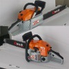 gasoline chain saw 62cc Max. cutting diameter: 558mm Engine type: air cooling, single cylinder,2-strokeDisplacement: 62ccRated output power: 3.2kwIdling speed: 2,800r/minBar length: 22″Optical Guide Bar: 24"/25"Chain:Made in china chain2-cycle oil/gasoline mixing ratio: 1:25Fuel tank capacity: 670mlEngine oil tank capacity: 350mlGeneral accessories: guide bar, chain, file,plug wrenchCarton dimensions: 480 x 290 x 300mmN.W.G.W.:8kg/9kgQty/20'FCL:670pcs